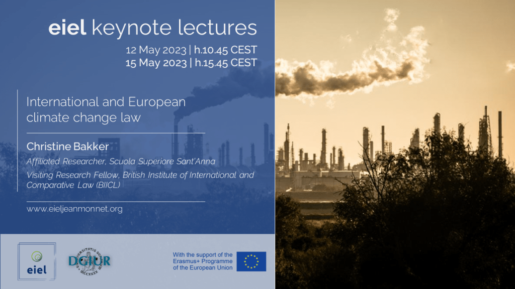 The academic staff of the EIEL Jean Monnet module is proud to once again welcome Professor Christine Bakker for two keynote lectures on international and European climate change law, which will be included in the module’s teaching programme for the 2022-2023 academic year.